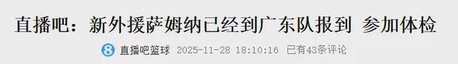 據(jù)國(guó)內(nèi)知名籃球平臺(tái)報(bào)道,薩姆納已經(jīng)前往廣東隊(duì)報(bào)到。