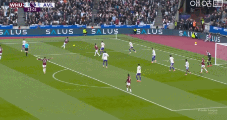 第24分鐘,波茨助攻,鮑恩門前點射破門,西漢姆聯(lián)2-1維拉
